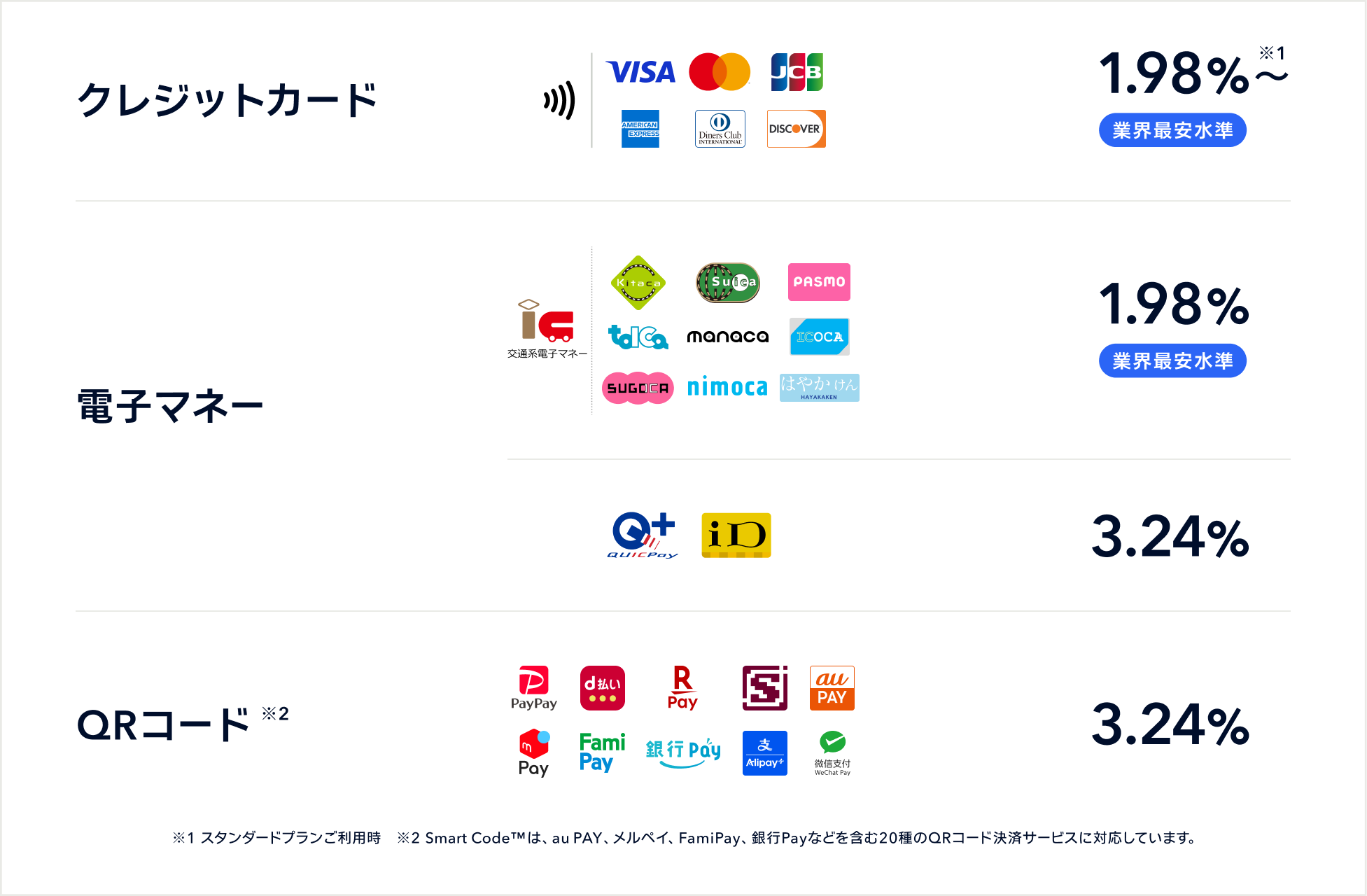 ・QRコード決済手数料:3.24%